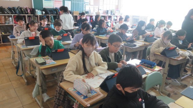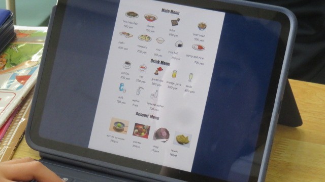 外国語科では、ていねいに注文したり、値段を尋ねたりする語句や表現の学習をしています。今日は、メニュー表の中から1000円以内で注文する物を選び、それを伝える練習をしました。