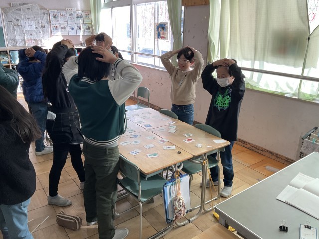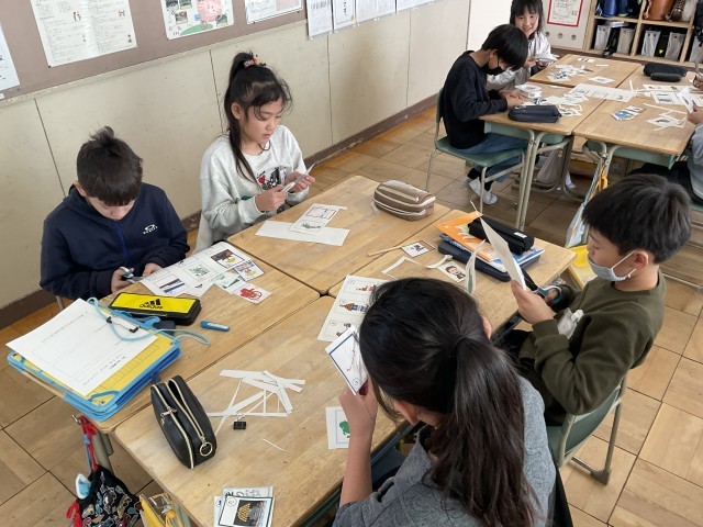 今日は、みんなで作ったカルタをハサミで切り取り、実際に遊んでみました。カルタには、2学期に学習した、愛知県の魅力がたくさんかかれています。とても楽しそうに取り組んでいました。