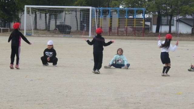今日はまだ、前回し跳びがうまくいかない子もいましたが、これから練習を重ね、いろいろな跳び方ができるようになるといいですね。