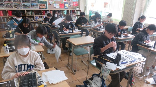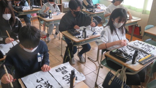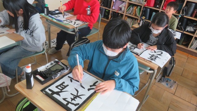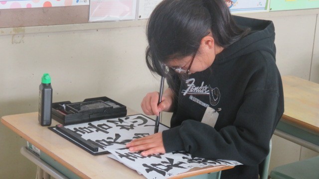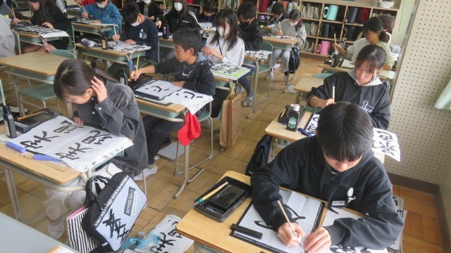 書写の時間は、自分が好きな言葉、大切にしている言葉を、思いを込めて書きました。