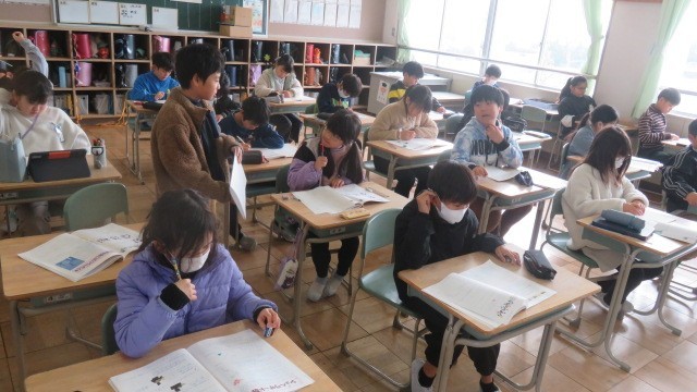 教室に戻ってからは、担任の先生から通知表をいただき、待っている間に冬休みの日誌などに取り組みました。6年生は、卒業式の『門出の言葉』を考えていて、すぐそこまで『卒業』が来ていることを感じました。