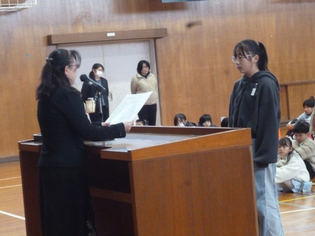 始業式の後は、小野競書会に参加したした子どもたちの表彰伝達も行いました。