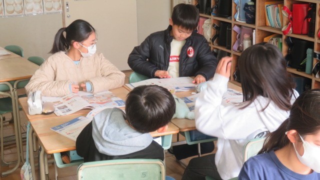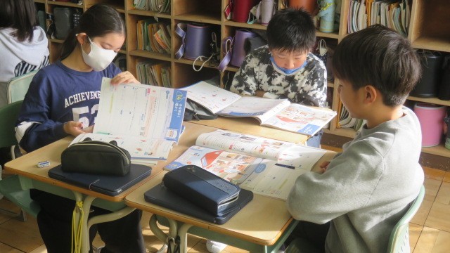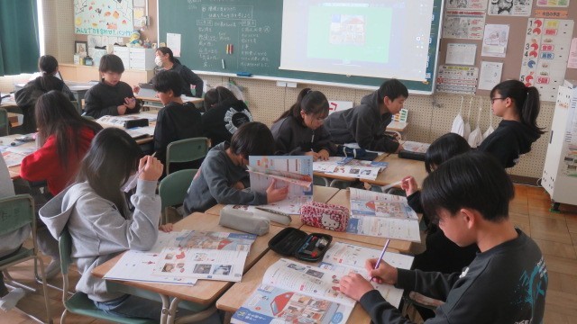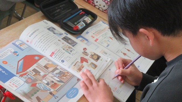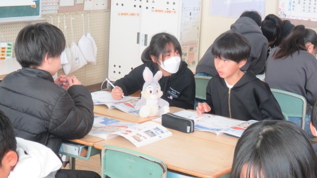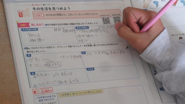 家庭科は、寒い冬のくらしを少しでも明るく暖かくするための工夫について、話し合いました。