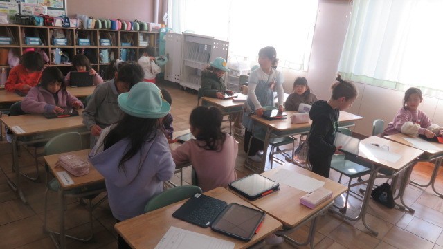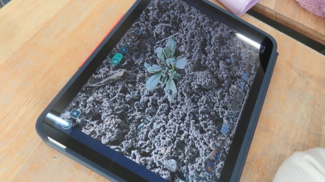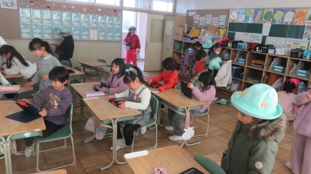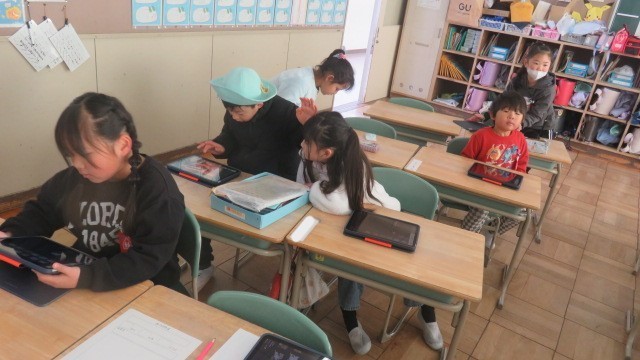 生活科の時間は、タブレットを持って出かけ、冬ならではの自然現象を撮影しました。