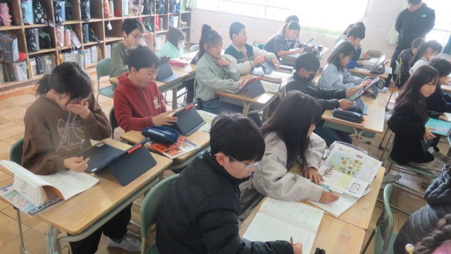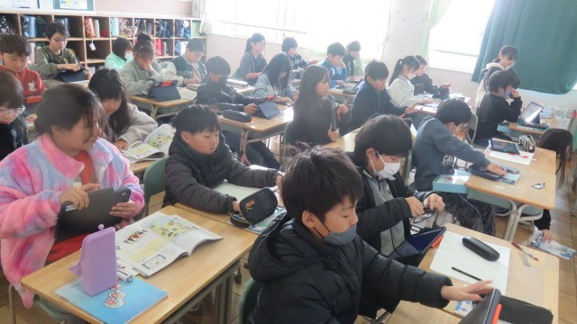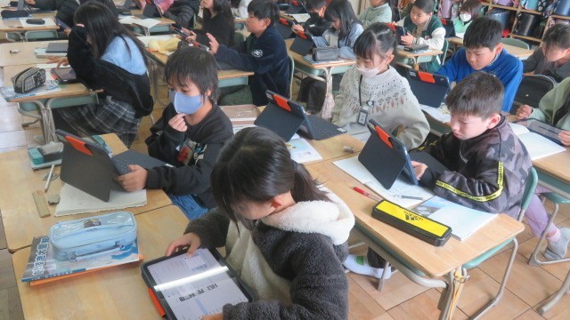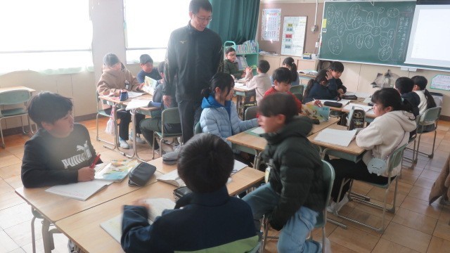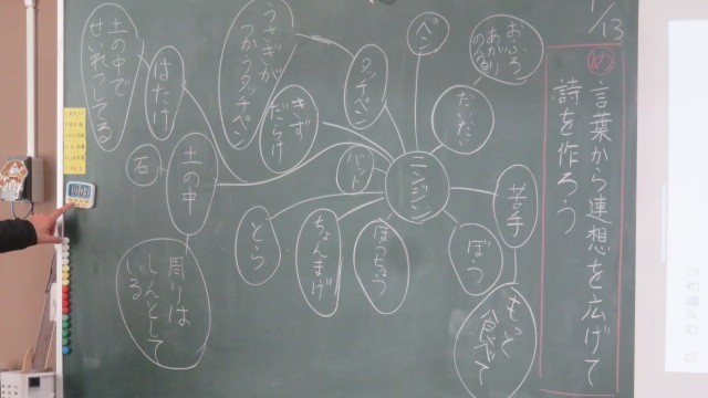 国語は、詩を作ります。一つの言葉からいろいろな言葉を連想し、詩のもとになる言葉のイメージを広げました。