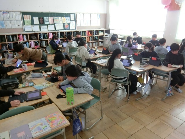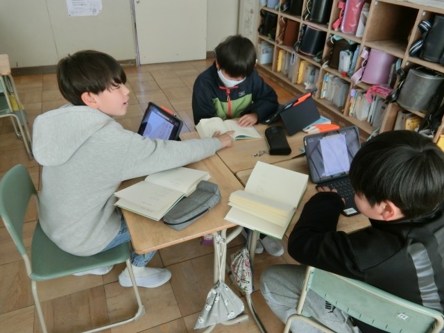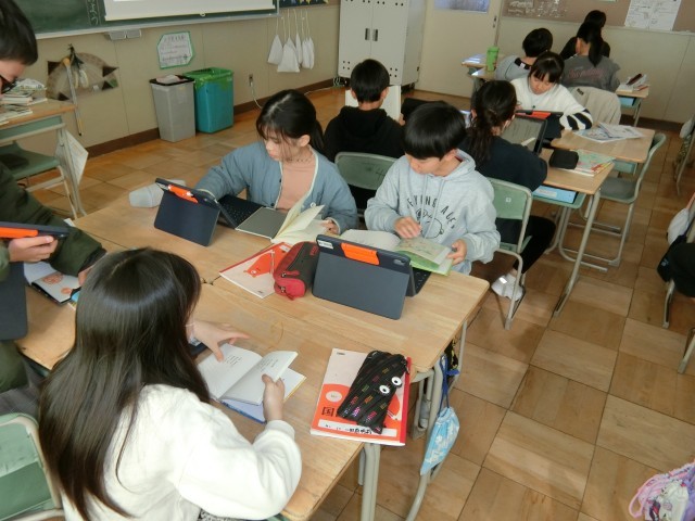 好きな詩を集めて自分だけの詩集を作るために、いろいろな詩の本を見たり交流したりしています。それぞれがどんな詩集にするか楽しみです。