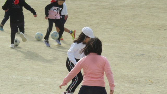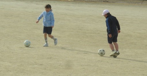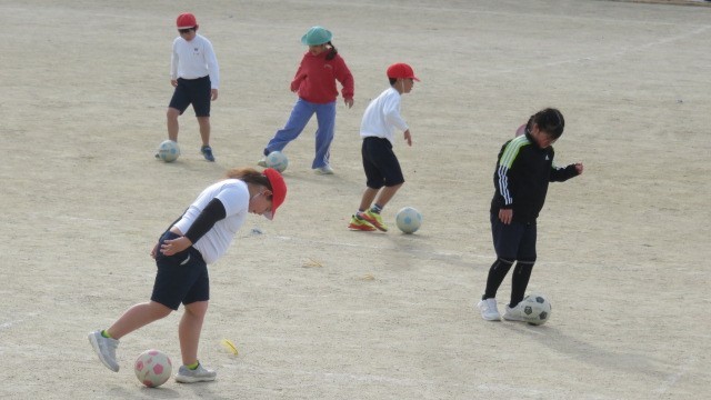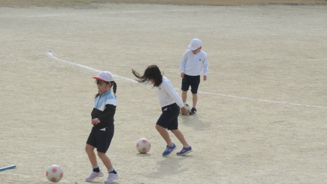 体育は、サッカーボールを使った運動をしました。ボールを止めたり蹴ったりしながら、ボールの扱いに慣れました。