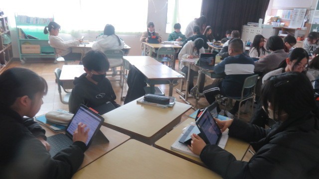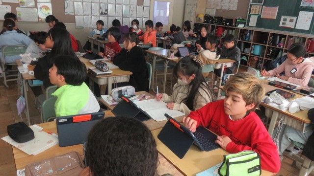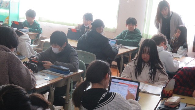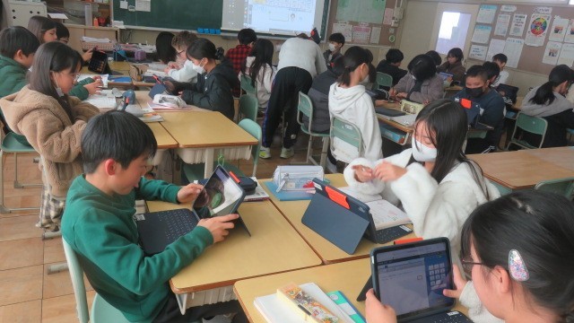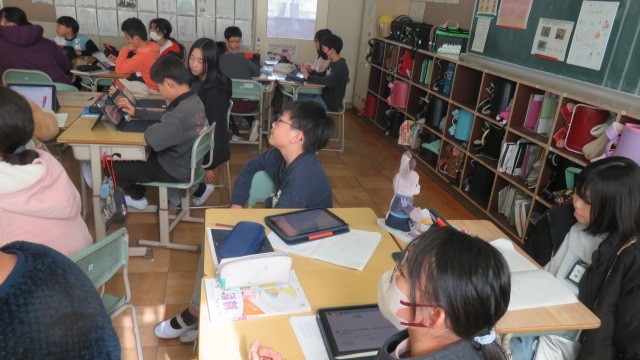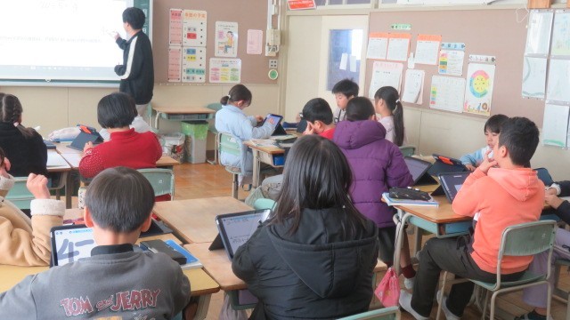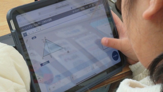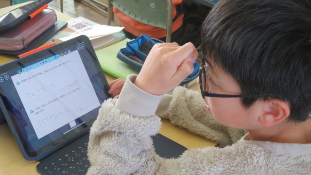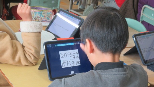 算数は、円周率と直径の関係を考えたり、タブレットの「ミライシード」で、これまで学習したことの習熟をはかったりしました。
