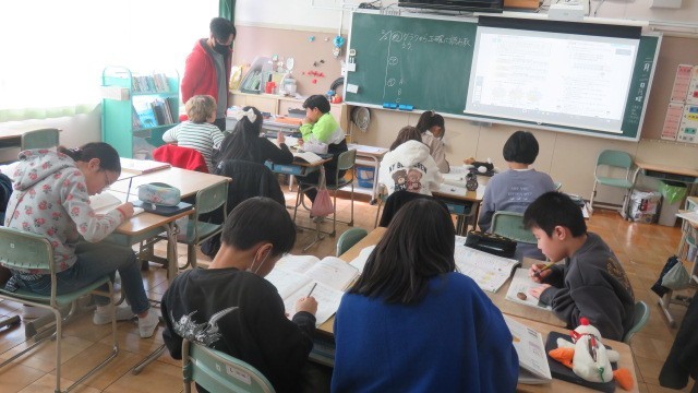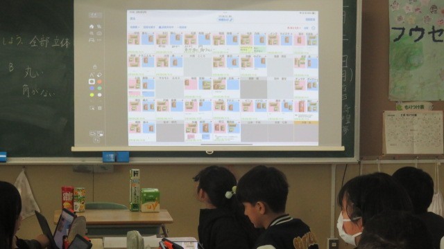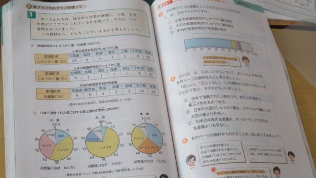 算数は、グラフから読み取った値を使って問題を解決したり、円柱や角柱とはどんな立体をさすのかを考えたりしました。