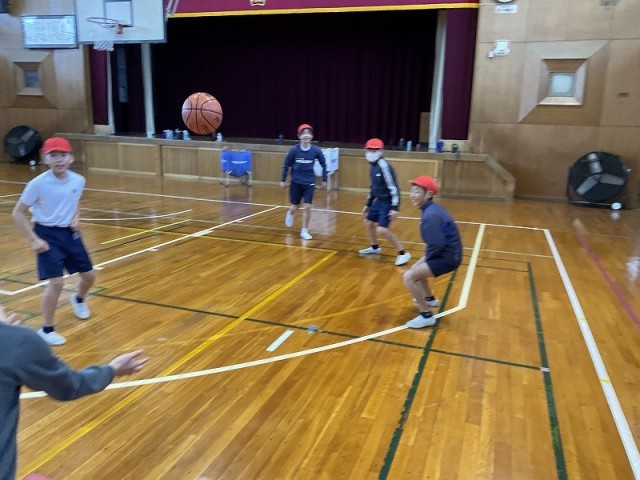 6年生の体育館では、バスケットボールの学習が進んでいます。桃ヶ丘小学校の体育館で運動するのも、残りわずかとなりました。