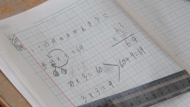 算数は、以前に学習した「23×3」の計算の仕方をもとに、「23×30」の計算の仕方を考えました。