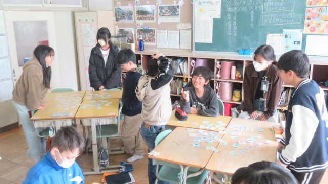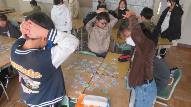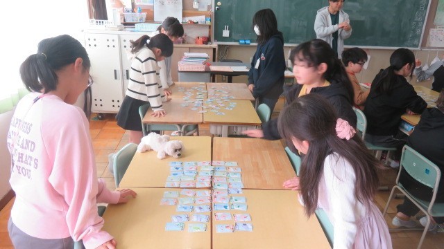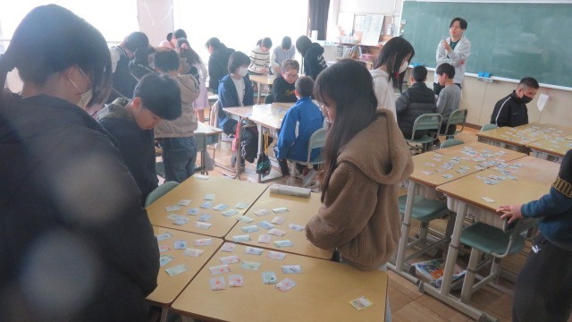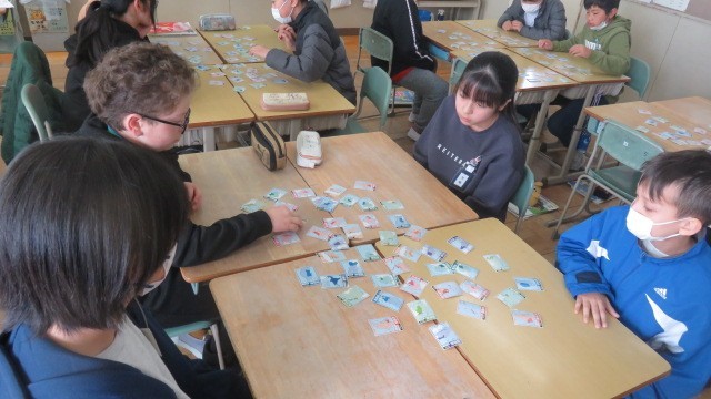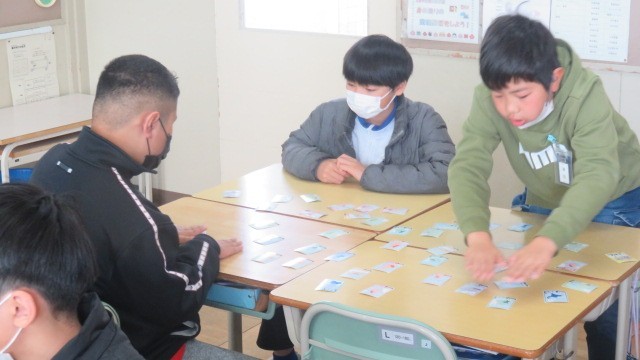社会科は、各県の産業や特産物などの特徴が読み札になっている「都道府県カルタ」をしました。これまで学習した知識をフル活用して挑みました。