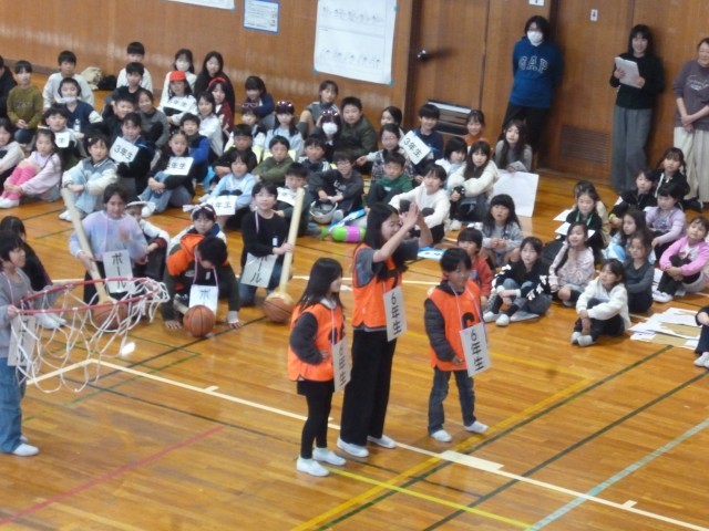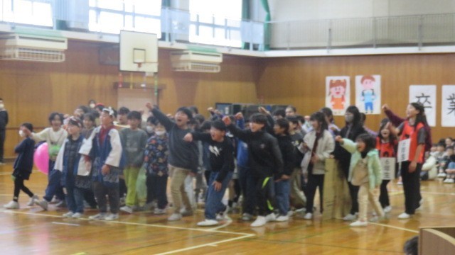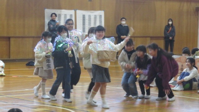 「卒業を祝う会」で、4年生は6年生に向けて心をこめた演技を届けました。