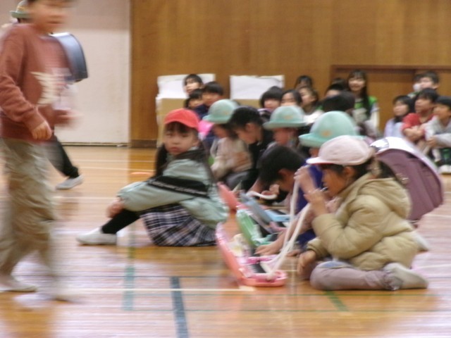 通学団や運動会でのかっこいい6年生の劇をしました。みんなで一生懸命練習してきた姿を見せることができました。6年生が笑ったり、楽しんだりしているのがわかって嬉しかったです。教室に帰ってくると「目の前に6年生がいて緊張した!」「他の学年の演技がすごかった!」など、興奮して話していました。