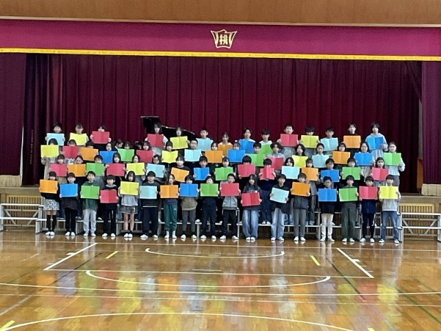 6年生の出し物は1年生から5年生にメッセージをこめた色と歌を贈りました。卒業まであと15日!桃ヶ丘小学校で過ごす1日を大切にしてほしいです!