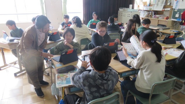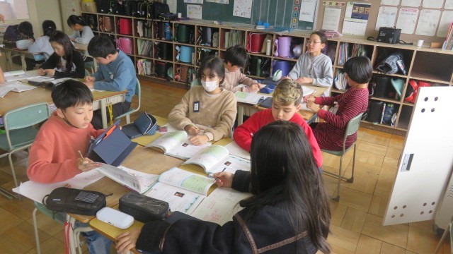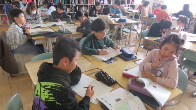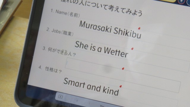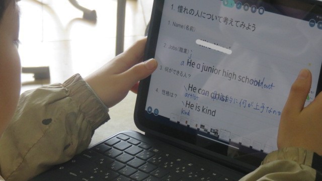 外国語の時間は、自分があこがれている人を紹介する文を考えました。その人の特徴を、簡潔に表します。