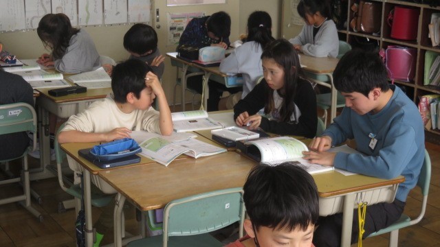 算数は、「速さ」の単元の復習問題に取り組みました。