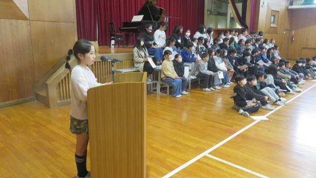 5年生は、群読「雨にも負けず」と合唱「変わらないもの」を行いました。6年生に今までの感謝とこれからのエールを伝えることができました。