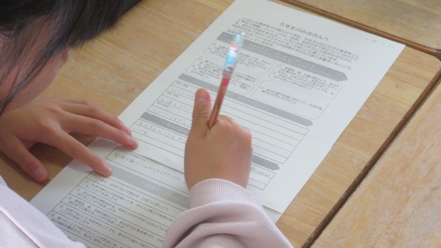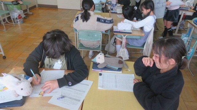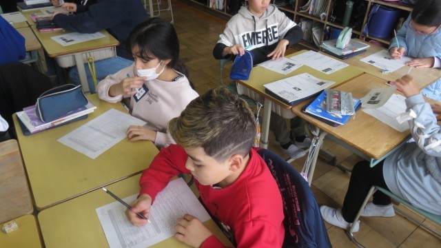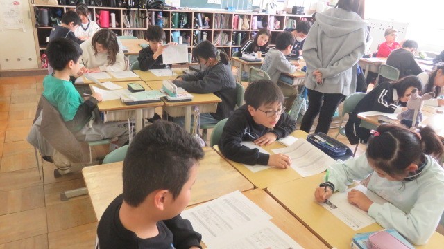 学活の時間は、1年のまとめのキャリアパスポートを書きました。1年間でがんばったことや成長できたことなどを振り返りました。