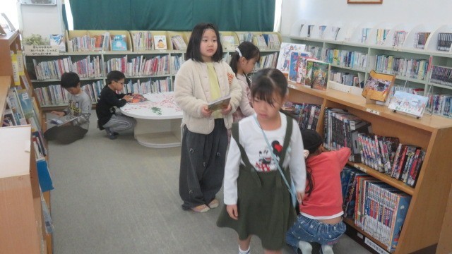 読書タイムのときに読む本を借りに、図書室へ行きました。本がたくさんあって迷ってしまいますが、本が好きな人は、選ぶのが速いですね。