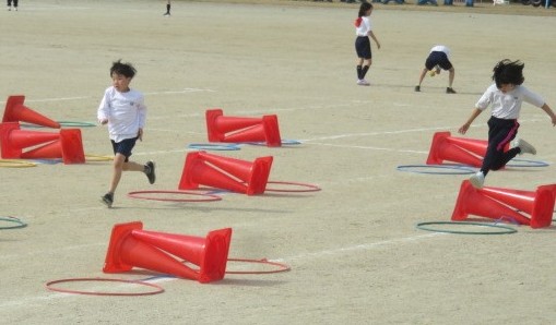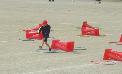 3年生:小型ハードル走&Tボール