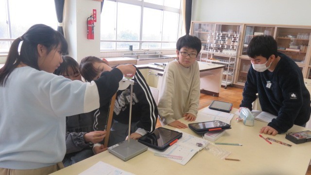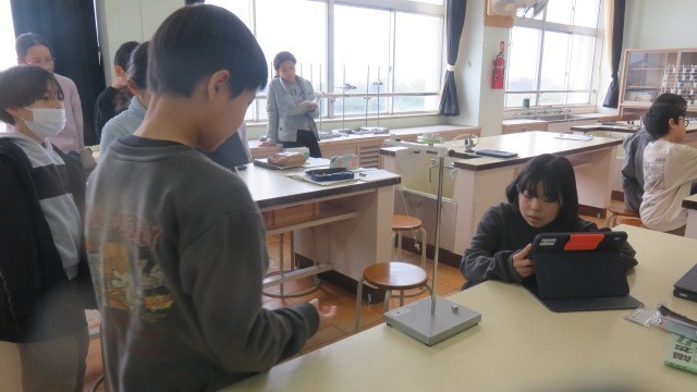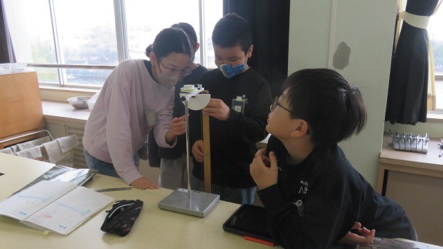 理科は、ふりこの長さが変わると、1往復の時間はどうなるのかを予想し、実験で確かめました。