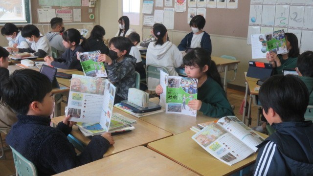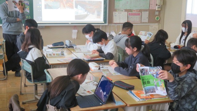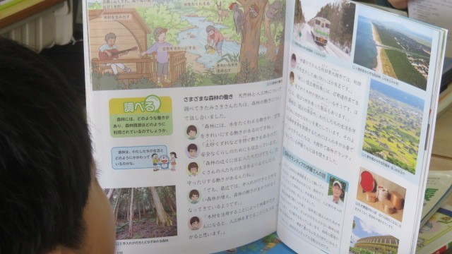 社会科は、森林や木の良さについて考えました。木は、机や鉛筆などの製品になるだけでなく、防風林・防砂林・防雪林として生活を守っていることに気付きました。