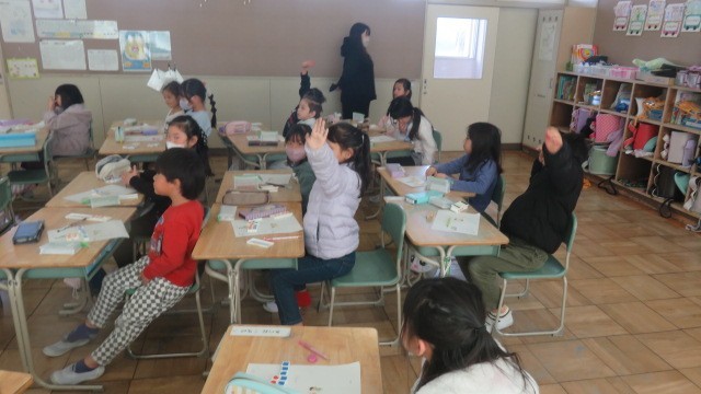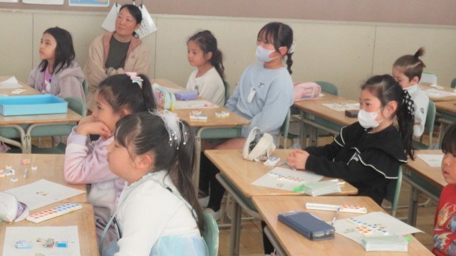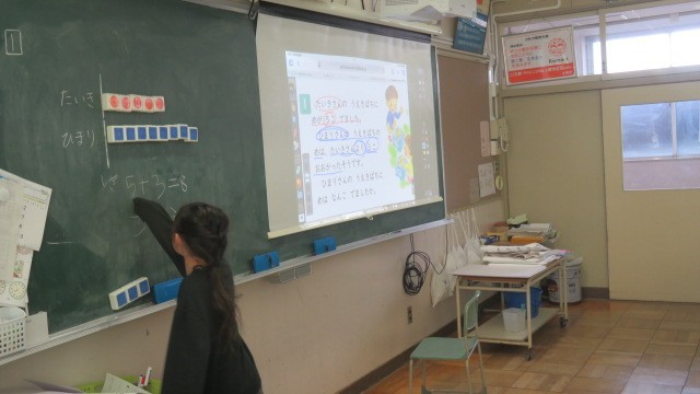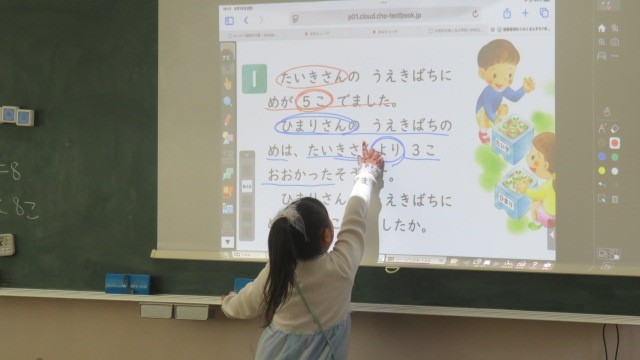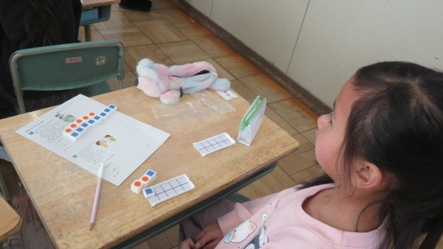数図ブロックを使って多少の関係を表し、どんな式になるかを考えました。友達の考え方を聞きながら、それぞれが理解を深めています。