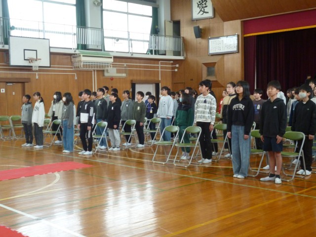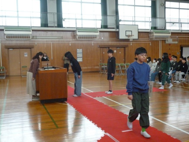 いよいよ来週末、卒業式を迎えます。今日は、そのリハーサルを行いました。入場から退場まで、動作のタイミングや動線を確認しました。在校生もいっしょに練習するのは、今日が初めてです。学級・学年練習とはちょっと違った緊張感が漂っていました。