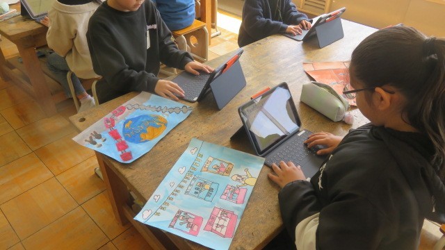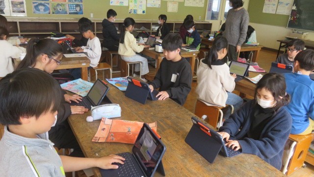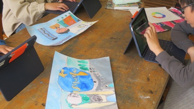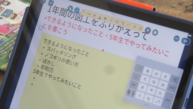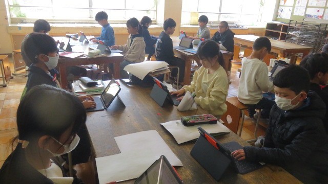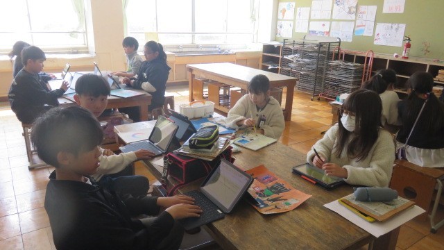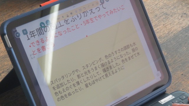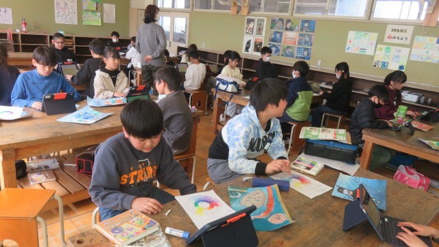 4年生最後の作品になった「思い出の絵」を仕上げ、1年間の図工の授業の中で、できるようになったことや5年生でやってみたいことなどを振り返りました。