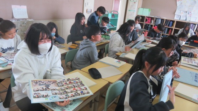 いよいよ明日は卒業式。桃ヶ丘小学校で過ごせるのもあと2日です。今日は、楽しみにしていた卒業アルバムが配られました。写真を見ると、その時の思い出がよみがえってきますね。