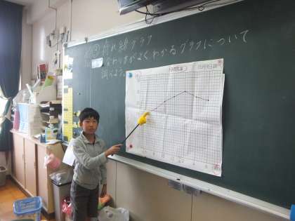 折れ線グラフに表すよさを生かして、進んで折れ線グラフに表しました。