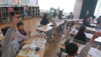 今日の社会科は、もも作りについて勉強で、めあては「ももづくりのくふうについて調べよう」です。総合的な学習で、もも作りを学習したので、虫を防ぐための袋かけ、ももを赤くするためのぎん色のシート・・・など、いろいろな意見がたくさん出ていました。