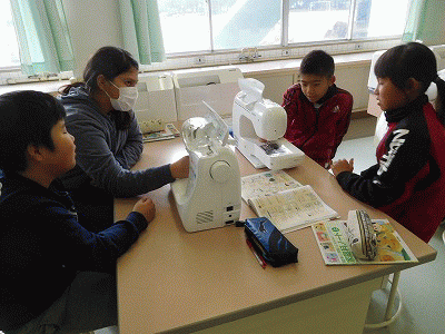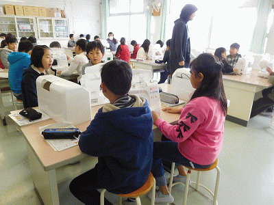 今日から家庭科は、ミシンにトライ!で、単元のめあては「ミシンの使い方を習得し、生活に役立つ物を作ろう」です。今日は、ミシンの使い方の勉強で、ミシンの針の取り付け方をとなりどうしで練習していました。