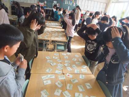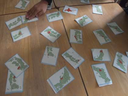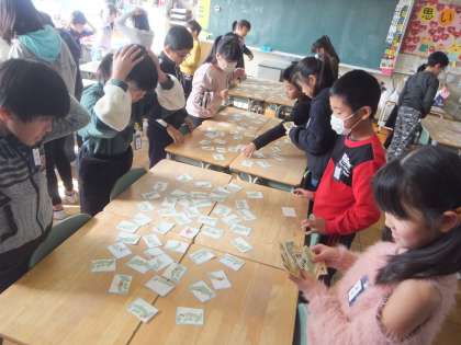 今日は、班の友達と都道府県カルタをしました。