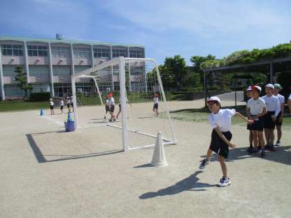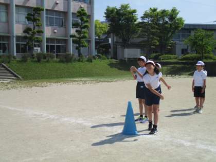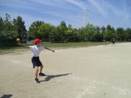 今日は来週の体力テストに向けて、ソフトボール投げを練習しました。