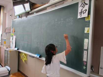 「分母どうしでかける」「分子どうしでかける」を約束に、たくさん問題に取り組みました。