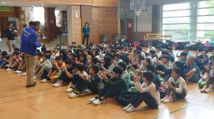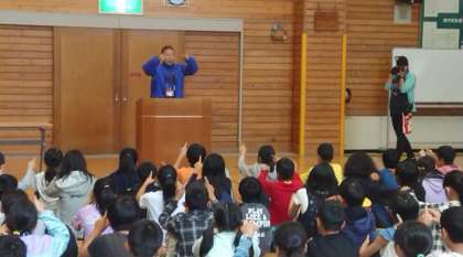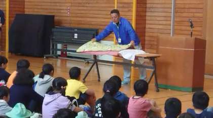 入所式では、桃ケ丘小の校旗を掲揚し、所長さんの話を聞きました。