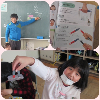 極には、N極とS極があることや同じ極どうしはくっつかないことが実験を通してわかりました。