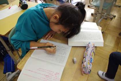 みんなで協力したり、話し合ったりする活動も大切ですが、一人で考え、もくもくと取り組む活動も大切にしたいです。