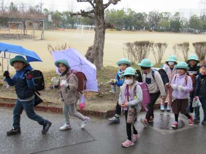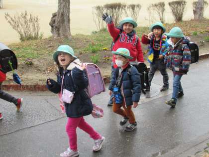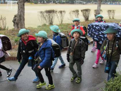 1年生の下校時にも、写真ではわかりづらいですが、雪が降っていました。
