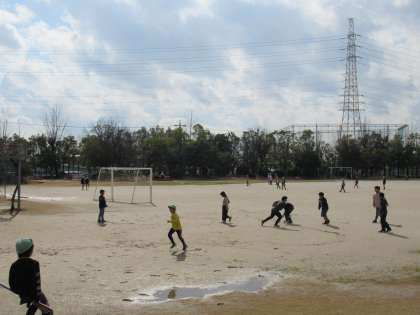 水たまりが残る運動場は元気な姿がいっぱいです。