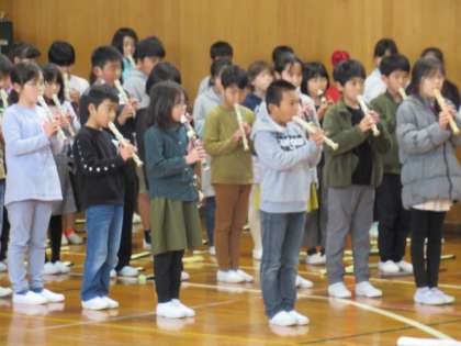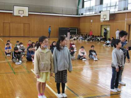 卒業を祝う会の練習をしました。