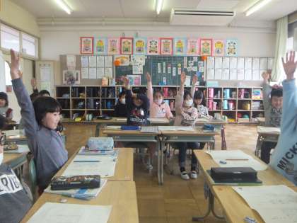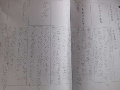 言葉の仲間分けゲームをしました。友達の作った問題を、みんなで考えました。仲間の言葉や漢字を知り、文の中で正しく使うことができました。