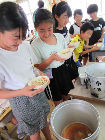 今日の給食は子どもたちが大好きなソフトめんです。6年生の教室からは、活気のよいジャンケンに一喜一憂する姿が見られました。