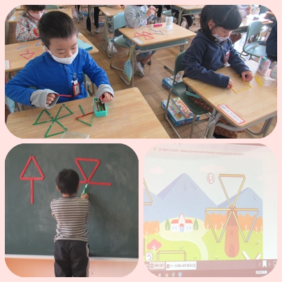 できあがると笑顔です。最後は、自分で考えた形を作りました。