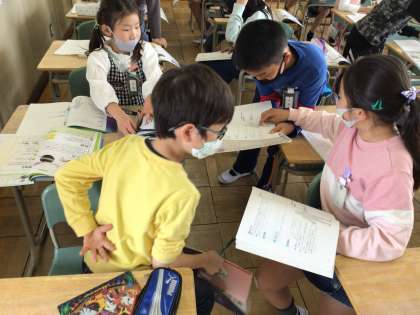 本時では、体の曲がる部分(関節)がどこにあるのかを予想しました。一生懸命体をひねったりして確認する児童や、骨の模型を実際にさわりながら考える児童がみられました。