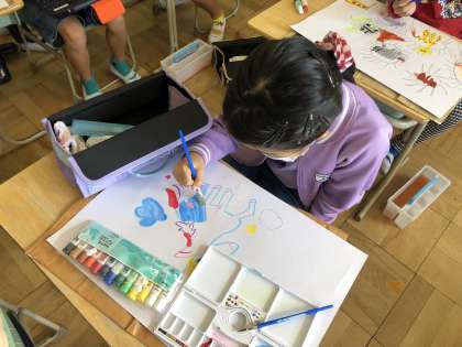 2年生の図工競技会では、「ふしぎなとまご」を題材に、たまごからでてくる世界を想像して作品を仕上げました。