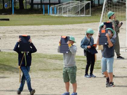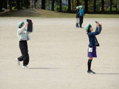 雲の形や動き、量などを観察しに、運動場に出ました。