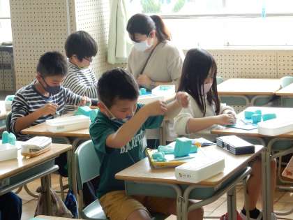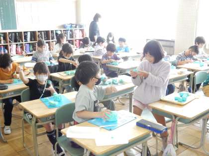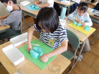 切り糸やきりべらを使って粘土の形を変えながら、思いついたものを作っていきます。
